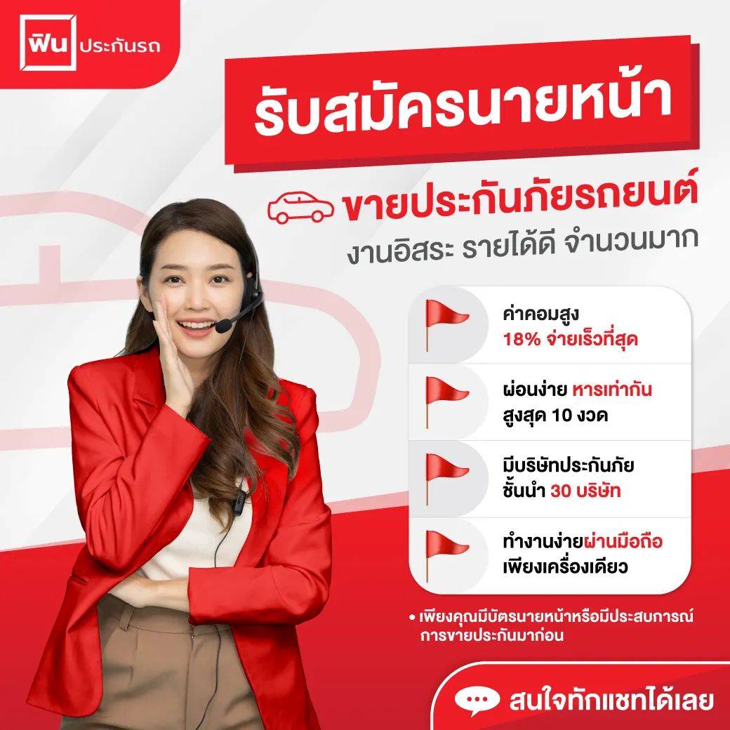 ![]() | ติดต่อผู้แนะนำ เพื่อขยายสายงานกับ ฟินประกันรถ | |